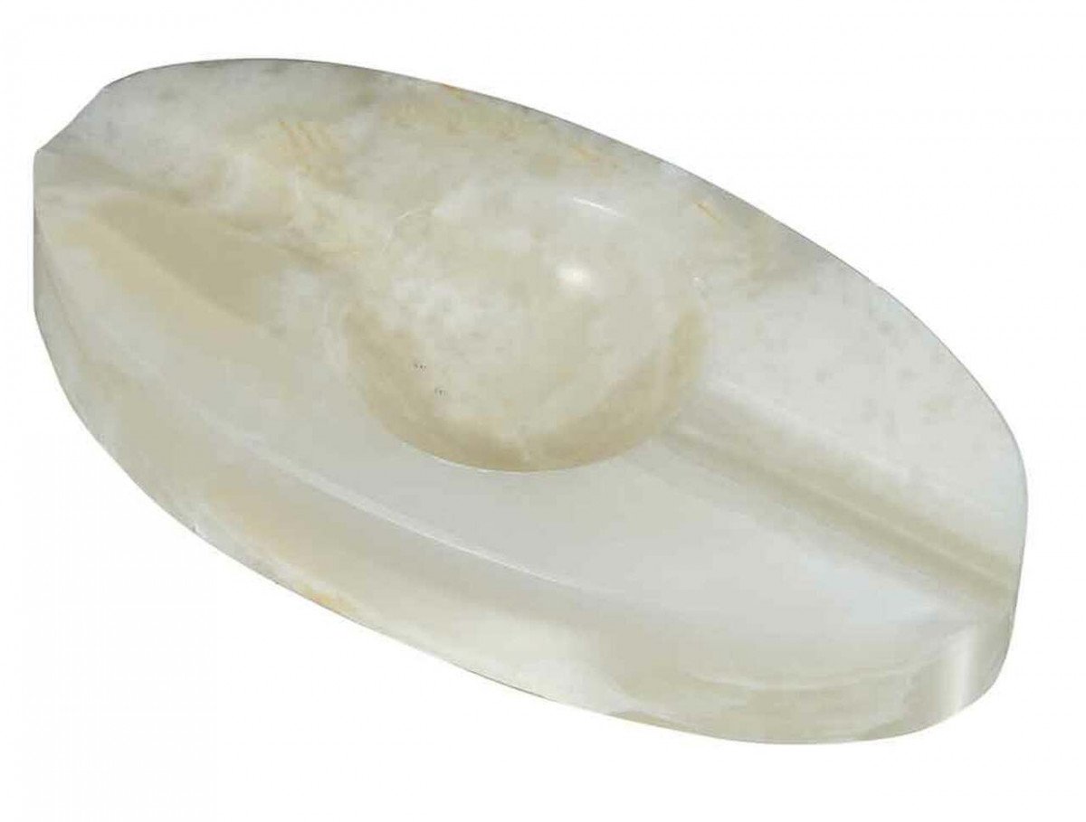 Azure White Oval Onyx Cigar Ashtray With 2 Cigar Rests