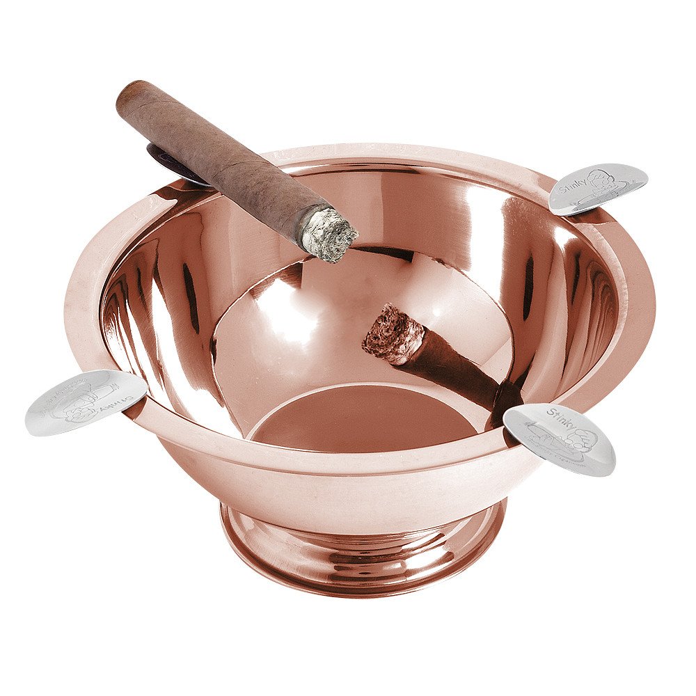 This ashtray is far from stinky, so don’t let the name fool you. This unique version of the original Stinky Ashtray is beautifully plated in copper over highly polished solid stainless steel, which is showcased in the 4 stirrups equipped on this ashtray. With the four finger design and amazingly deep bowl, the Stinky Copper Ashtray is the perfect cigar accessory for you and your cigar buddies to enjoy your premiums together. Add this attractive and affordable ashtray to your cigar den today.
