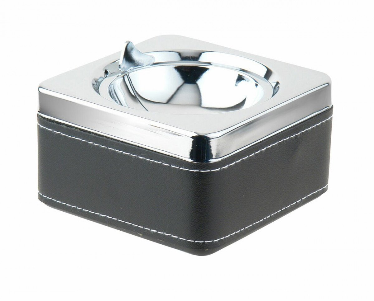Swivel Black Leatherette & Stainless Steel Cigarette Ashtray