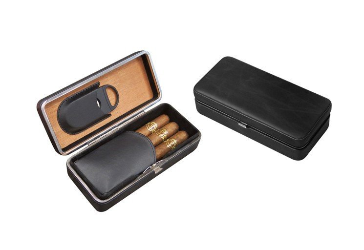 Folding Leather Travel Cigar Case w/ Cutter - Black