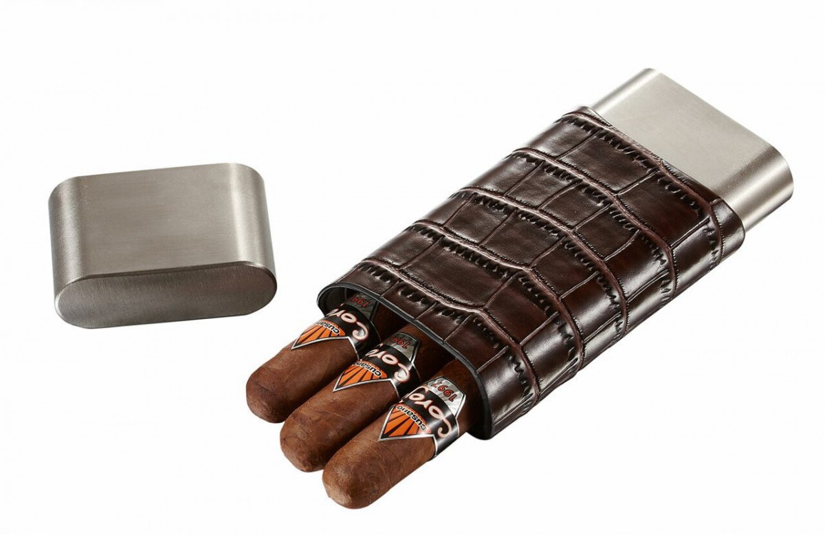 Hacienda Crocodile Patterned Leather and Stainless 3 Finger Cigar Case