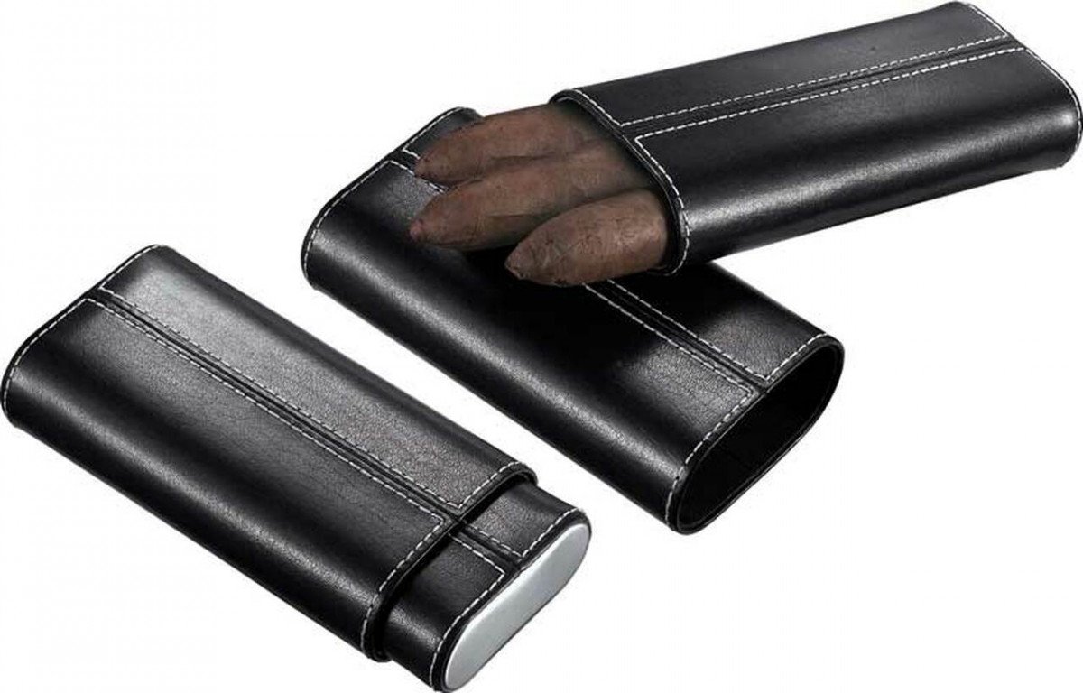 Naturale Black Leather Crushproof Cigar Case with Interior Cedar Lining