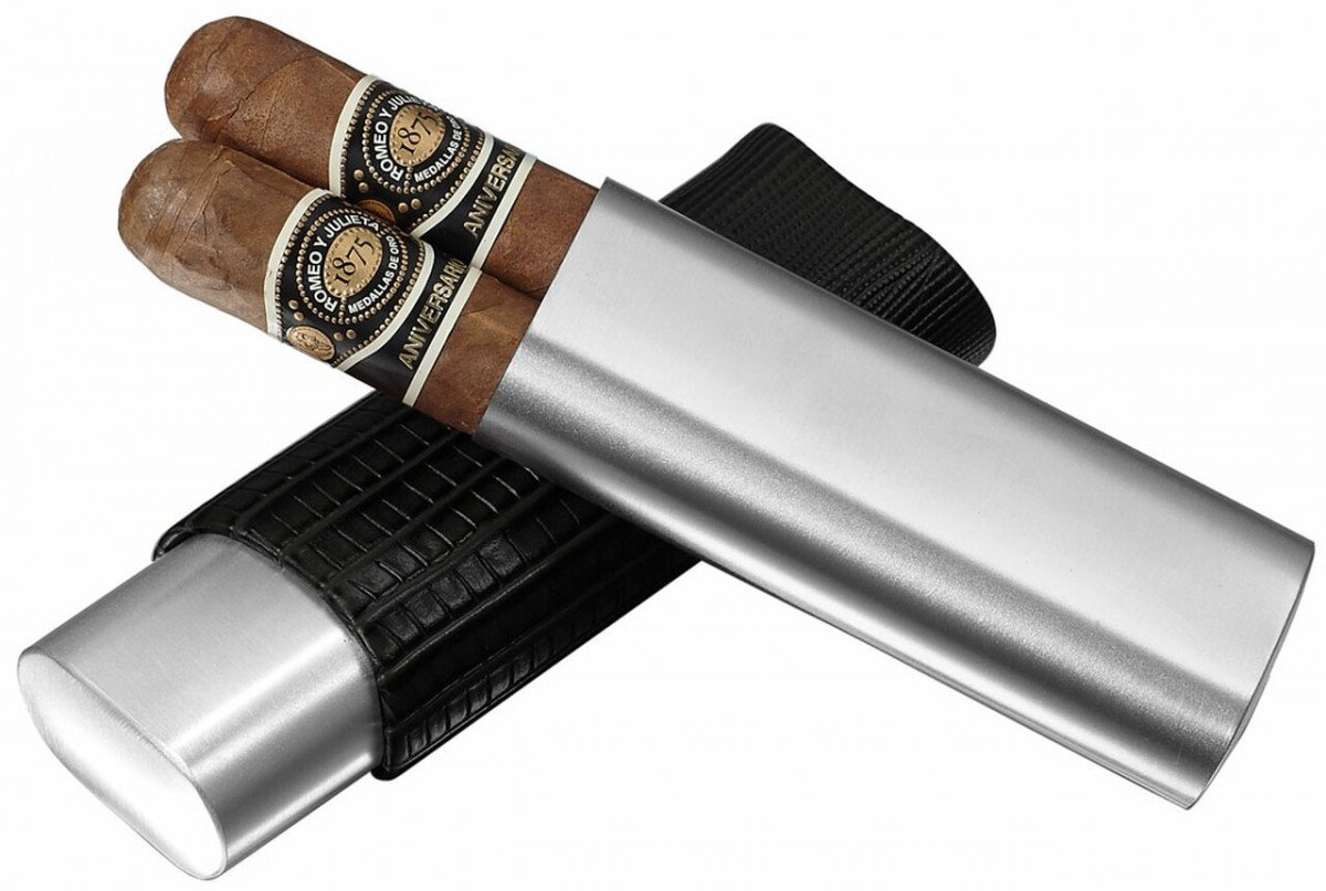 Salerno Black Leather 2 Finger Cigar Case