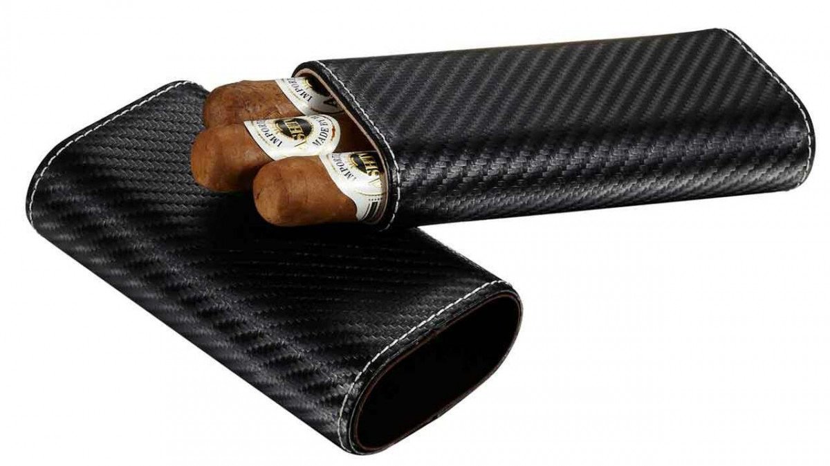 • Carbon Fiber Patterned with Textured Finish; White Stitching around the edges; Cedar Lining to preserve cigar Humidity; Crushproof
