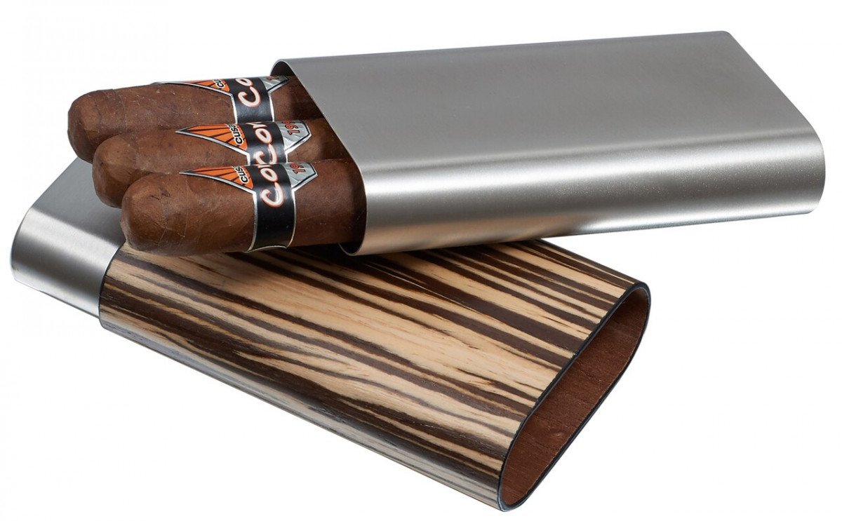 Visol Carver Zebrawood and Stainless Steel Cigar Case