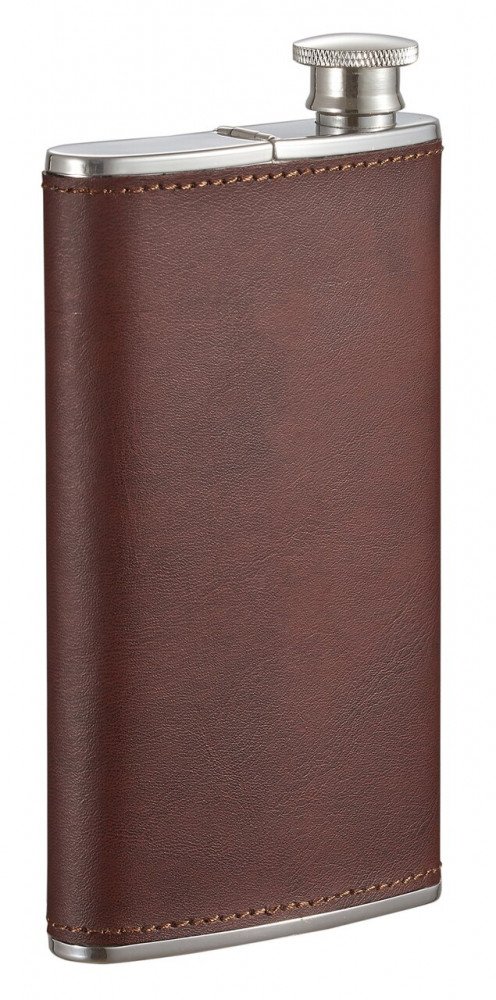 Visol Edian Stainless Steel 4 oz Flask with Built-in Cigar Case - Brown Leather