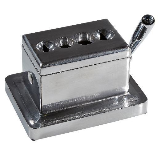 This piece is impressive. Equipped with a 52 and 60 ring gauge straight cutter and a 52 and 58 ring v-cutter, this device is able to cut almost any cigar. All you need to do is place a cigar into the divot on top and pull the lever and this stainless steel gadget will make a clean cut through any cigar of your choice. This cigar prepping machine is great for a desk top cutter as the sliced cigar caps drop into the bottom of the cutter with no mess left behind. Plus, with a variety of different styles of cut available, the Quad Tabletop cutter can easily replace all those junky gizmos you’ve picked up over the year in one easy package.