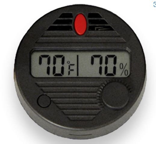 The HygroSet is capable of being adjusted after calibration. Each click of the adjustment knob changes the humidity display (+ / -) by 1%.