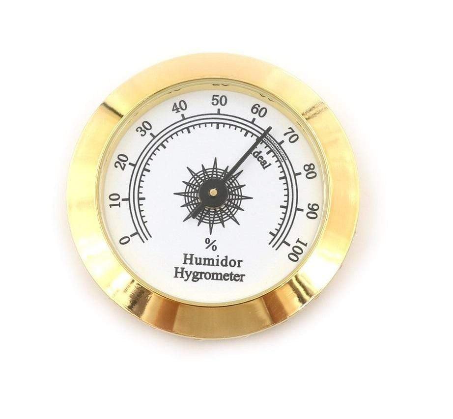 Analog hygrometers not only offer an elegant and aesthetic appeal, they also serve an important purpose. This unit provides an accurate humidity reading to help you protect your smokes. Use as an exterior embellishment, or mount to the inside lid by utilizing the adhesive backing. Quickly monitor the humidity level of your humidor with this convenient analog hygrometer.