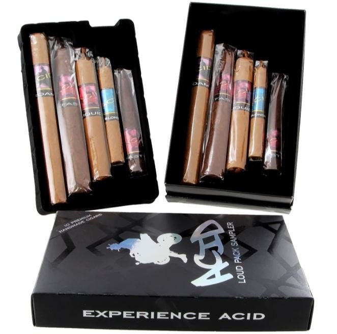 Acid Loud Pack Sampler is loudest selection of Acid cigars yet! Each Acid cigar explores different curing and fermenting techniques that are closely guarded by Drew Estate. Each blend is unique with proprietary essential oil blends that have unique aromatic characteristics.