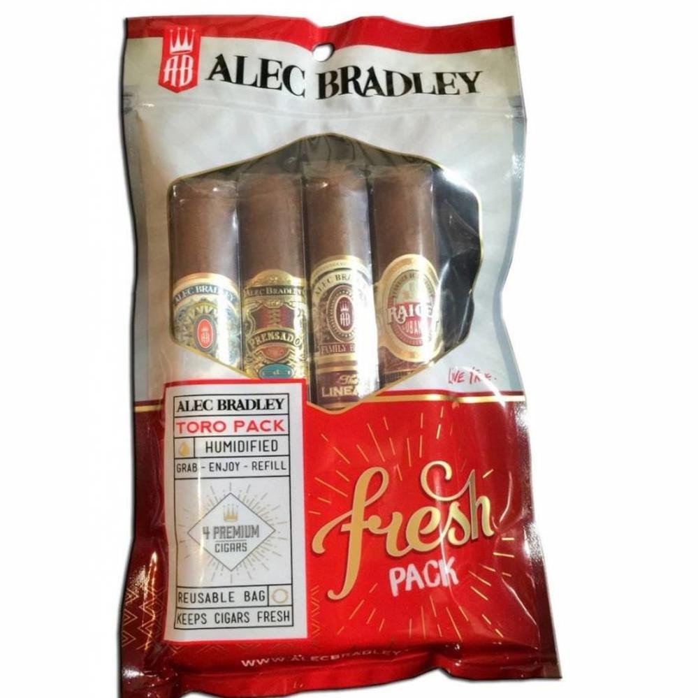 Alec Bradley Fresh Pack is a reusable humidified pack featuring four premium Toro sized cigars.