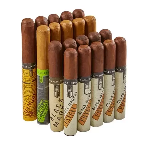 All Black Market cigars. One huge discount. Is this what they mean by “the dark web?” I’ve got no clue, but, here’s what I do know – we're hooking you up with an exclusive chance to sample all four lines under Alec Bradley’s best-selling and award-winning series with our latest concoction: the Alec Bradley Black Market Mega-Sampler. Featuring the original, 90-rated blend, the 93-rated #9 Cigar of the Year Black Market Esteli, the super-charged, ligero-laced Black Market Vandal, and the sultry-smooth Black Market Vandal ‘The Con’, there’s more than enough to love in this bodacious assortment. Add in our everyday savings, and you’ve got a true no-brainer.