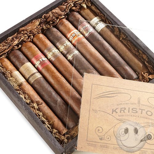 Kristoff is a small-batch family of high-end blends from Nicaragua. High-end blends offering full-flavored bouquets loaded with unique, complex flavors. Now you can savor the entire family, thanks to this lovely sampler box of 8, showcasing eight different Robusto sizes boasting a chunky, 5.5" x 54 frame.