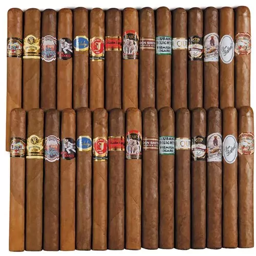 Winner, winner, chicken dinner. 30 bulbous Churchills, fifteen different blends, 100% Dominican handmades....all for one unbeatable price. Sure, the arts-and-croissant crowd isn’t showering these cigars with huzzahs and the muckety-mucks may not be rating them 90+, but you’ve got handmades as far as the eye can see for a price that’s right as rain. 30 handmade Churchills, 15 different blends, 1 fun-omenal price.