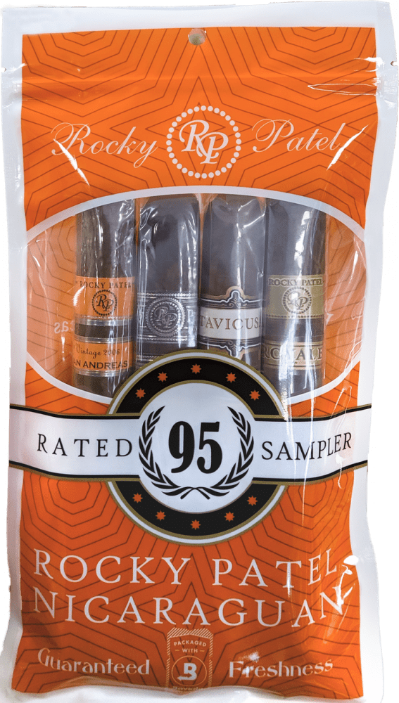 Rocky Patel Nicaraguan Fresh Pack Toro Sampler features a luxurious selection of Rocky Patel's 95+ rated Nicaraguan blends. These handmade cigars are the definition of best and boldest blends. Rocky Patel Nicaraguan Fresh Pack Toro Sampler arrives in a humidifed and resealable pouch to keep your stogies fresh on the go.