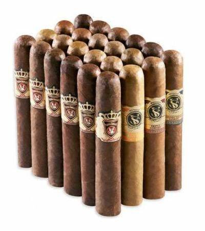 For those that like their cigars super-sized. These mammoth box-pressed beauties from Victor Sinclair pack the flavor in droves. Coming in at a whopping 6”x70 size, these Dominican handmades are heavy in the hand but slim where it counts - the wallet. Running the gamut from mellow to medium-full-bodied, this sampler has a little something for everyone. 4 top notch blends, 20 premium, handmade cigars in total available for a fraction of suggested retails, this sampler is a humidor-stuffing, bonafide no-brainer.