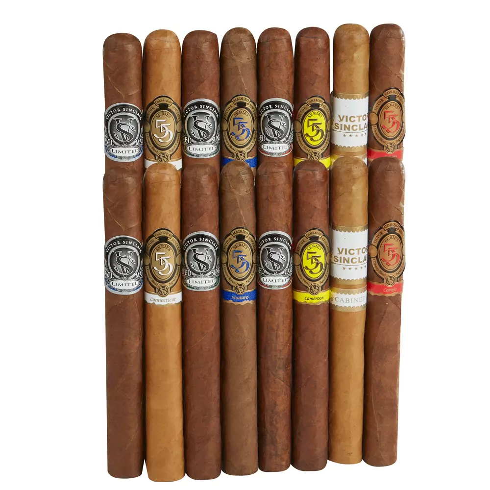 The Victor Sinclair Serie '55' Flight Sampler is the epitome of a smooth journey. Have your boarding pass at the ready, and prepare to experience 12 of Victor Sinclair's uber-popular and utterly affordable handmade options. First stop, the smooth and mellow Imperial Connecticut — a 6.2" x 52 toro that's as decadent as they come. Then we'll take a quick layover and check out Imperial Habano, a medium to full-bodied blend that's a bit more complex, with notes of oak, espresso, and leather. And finally, we'll arrive at our destination: the Imperial Maduro. Rich and oily, you'll find a five-country cocktail of long-fillers here that's sure to delight.