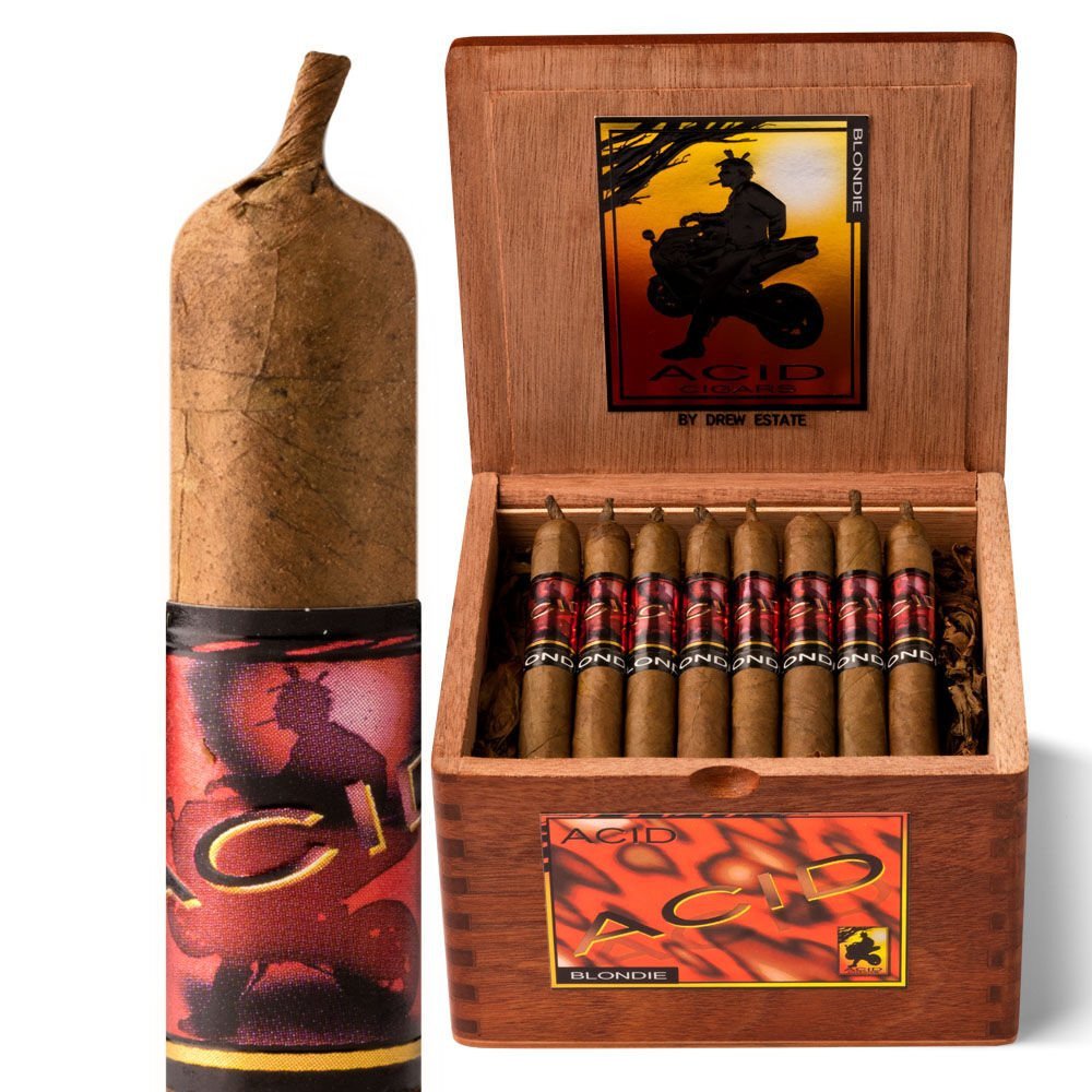 The colors blue and red may also have a political meaning these days, but when it comes to comparing Acid Blondie Red Cameroon cigars to their Blondie Blue cousins, the vote may call for a runoff. They're both excellent, but here's the difference: Blondie Red boasts a toothy African Cameroon wrapper and waives the sweetened cap for smoke that reveals more of the rich Nicaraguan tobacco flavors, while the infusion retains that classic Acid spice to the aroma. For Acid freaks who want even more mojo, Blondie Red is The Boss.