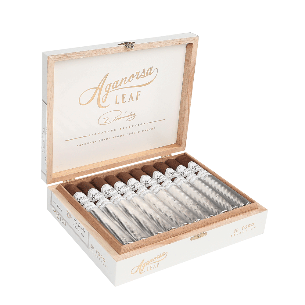 Handcrafted in Nicaragua, Aganorsa Leaf Signature Maduro Toro (6.0"x52) is a fine medium to full-bodied handmade delivering notes of pepper, earth, and dark coffee. With a gorgeous dark and oily Maduro wrapper, this cigar is championed by long-fillers harvested from the lush Aganorsa tobacco fields in Nicaragua.
