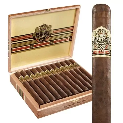 The Ashton VSG Sorcerer is a full-strength, box-pressed Churchill that is exclusively blended by legendary master blender by Carlos Fuente Jr. and handmade in the Dominican Republic. The VSG’s proprietary Ecuadorian sun-grown Sumatra-seed wrapper is expertly placed over a premium Dominican tobacco that has been carefully aged. This private blend creates the VSG’s distinctive aroma and its bold, yet balanced profile of sweet cedar and warm espresso is underscored by a dark chocolate note.