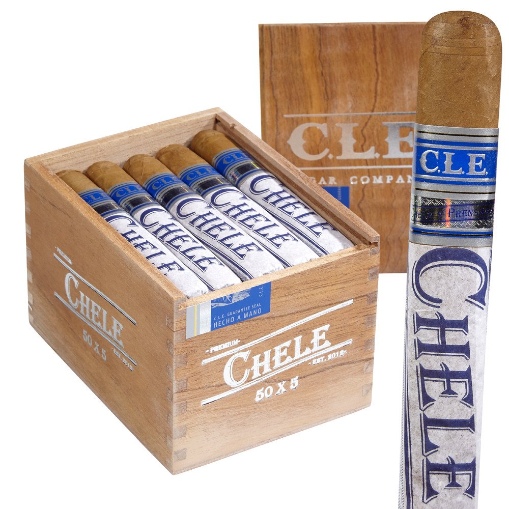 Cle Chele 5x50 Connecticut Box-pressed cigars are beautiful medium to full body smokes that are hand-rolled with top-shelf, aged Nicaraguan fillers that are encased by a light-brown Connecticut wrapper grown in Eucador. The blend combines perfectly to deliver a bold flavor that is somewhat tamed by the lighter Connecticut wrapper.