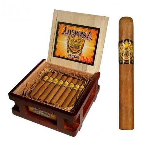 Created by Drew Estate, known mainly for the extremely popular Acid lines, the Ambrosia is an extremely unique product. Almost every size has its own wrapper, enclosing a blend of Nicaraguan and Honduran tobaccos enhanced with a variety of Southeast Asian and European spices. Each cigar is aged for at least 4 months, and then placed in cedar cabinets for over a month where the spice flavors can infuse further with the cigar. Drew Estate makes some of the most original and interesting infused cigars with excellent construction and burn. If you're looking for something a bit different, then these cigars are for you.