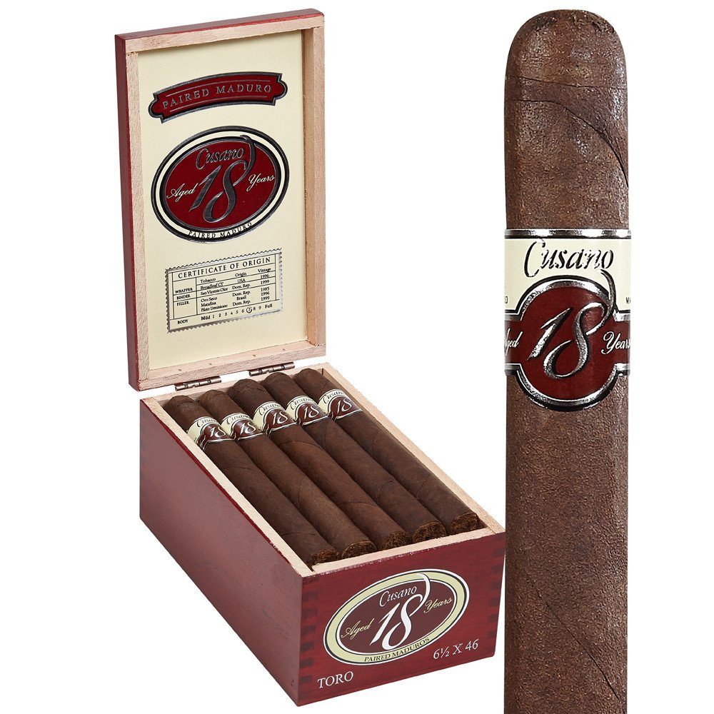 When a cigar consists of 18-year-old tobaccos, you know it’s going to be good, but when you combine those premium-aged tobaccos with an insane everyday low price, you take it up a notch to great with Cusano 18 Maduro. This unique blend crafted out of the Tabadom Tabacalera combines the 18-year-old Dominican Oro fillers with aromatic Piloto and San Vicente Olor held together by a sweet and spicy Brazilian Mata Fina maduro binder wrapper and all covered up by a thick, toothy, cocoa and fresh fruit flavored Connecticut Broadleaf maduro wrapper leaf. These medium-bodied dark treats deliver a rich, chocolaty flavor profile along with a silky smoking experience in a Toro-sized vitola.