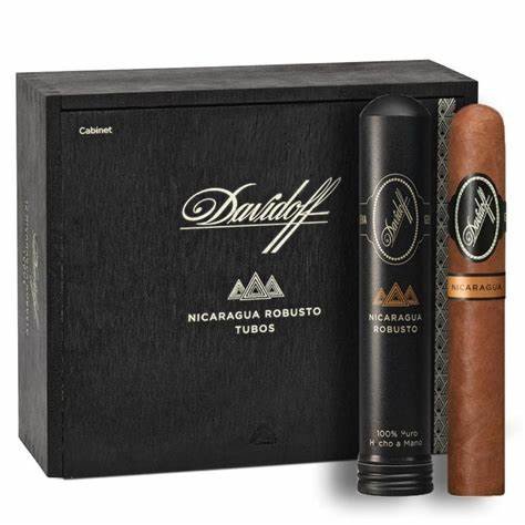 The Davidoff Nicaragua Robusto Tubos finds itself taking an acclaimed brand primarily known for its Dominican tobacco, and proving it's not just a one-trick pony. Although rolled at the Davidoff factory in the Dominican Republic, this full-bodied robusto has entirely Nicaraguan components, making it a rich and complex departure from what fans of the renowned company are accustomed to. With an oily Nicaraguan Habano wrapper covering a Nicaraguan Jalapa binder and top-shelf Nicaraguan filler, the Davidoff Nicaragua Robusto Tubos offers delectable notes of wood, leather, and cocoa... a treat for the senses that no smoker should miss. Individually packaged in an aluminium tube for easy transport and maximum freshness.