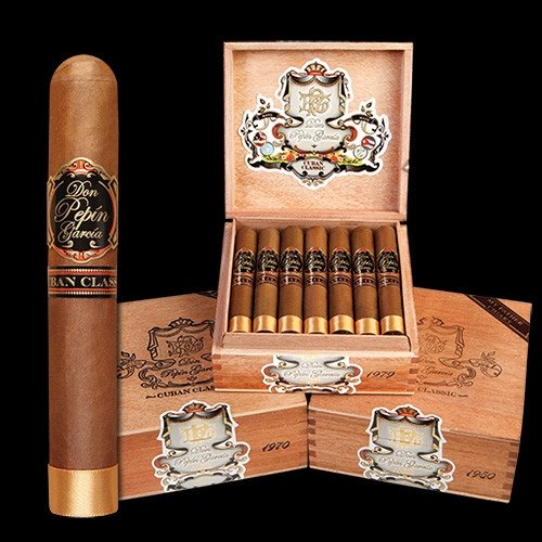 Don Pepin Garcia Black Label 1950 (6.0" x 60) is the strongest blend of 'Don Peppin' Garcia made thus far. Earning a 92-point rating, this cigar has a toasted almond flavor with notes of wood, pepper and leather. This blend of Cuban-seed tobacco comes from Nicaragua and is covered in a beautiful caramel-colored wrapper. A magnificent cigar that would be a great addition to any humidor.