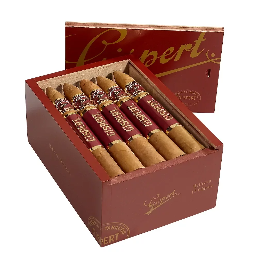 Gispert Belicoso (6.1" x 52) is handmade in Honduras with a golden Ecuadorian Connecticut shade wrapper with Honduran binder and Honduran and Nicaraguan fillers. Mellow and creamy, with a cedar-like finish, these smoother and moderately-priced cigars have a storied pedigree that traces back to 19th century Cuba.