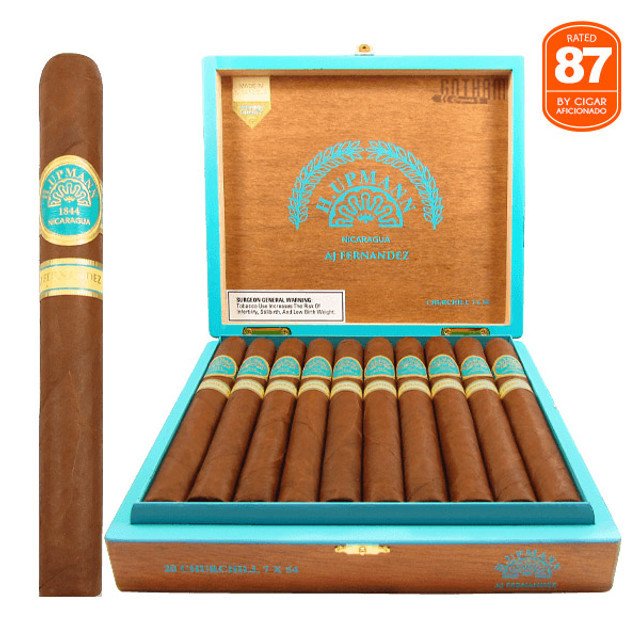 H. Upmann by AJ Fernandez Churchill is handmade in Nicaragua and features a superb blend of Pilato Cubano and Criollo '91 long fillers and Nicaraguan binder. The finishing touch is a gorgeous Ecuadorian Sumatra leaf wrapper. The result is sweet and complex with rich notes of coffee, black cherries and nuts. The cigar smokes medium to full bodied with an even burn throughout. H. Upmann by AJ Fernandez Churchill is 7 x 54 and available in boxes of 20 cigars.
