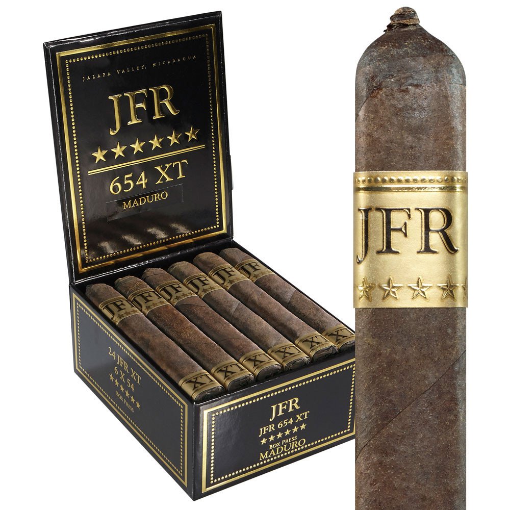 The JFR 654 XT Maduro (6" x 54) is a medium to full-bodied treat using mostly Nicaraguan tobaccos from the famed Esteli and Jalapa Valley. It's topped off with a San Andres wrapper adding to its fuller body. These were made by the same guys that brought you the Casa Fernandez, so you know you're getting quality tobacco.