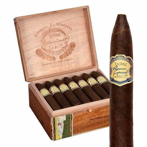 The Jaime Garcia Reserva Especial Super Gordo cigar features a veiny, dark, oily, yet beautiful Connecticut Broadleaf wrapper that is without flaw. The binder is Ecuadorian with filler coming from both the Oliva and Pepin farms in Nicaragua. The construction is near perfect, just the right amount of filler and burning evenly all the way to the nub. The smoke is thick, white and on a calm day billows around your head.