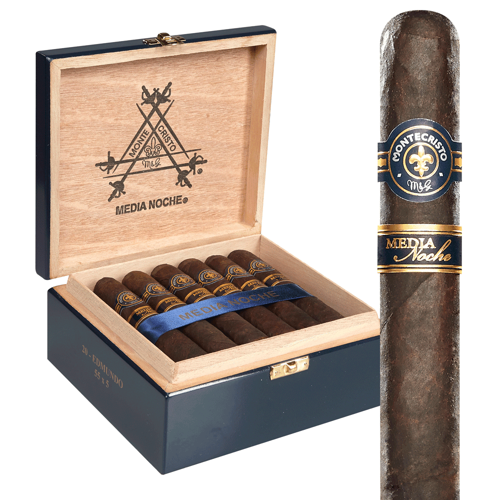 Covered in a dark Connecticut Broadleaf Maduro wrapper, Montecristo Media Noche is a premium Dominican handmade with nuances of cocoa, espresso, and black pepper. With an incredible blend of super-premium tobaccos in its long-filler composition, this blend also boasts medium to full-bodied notes of dark chocolate.