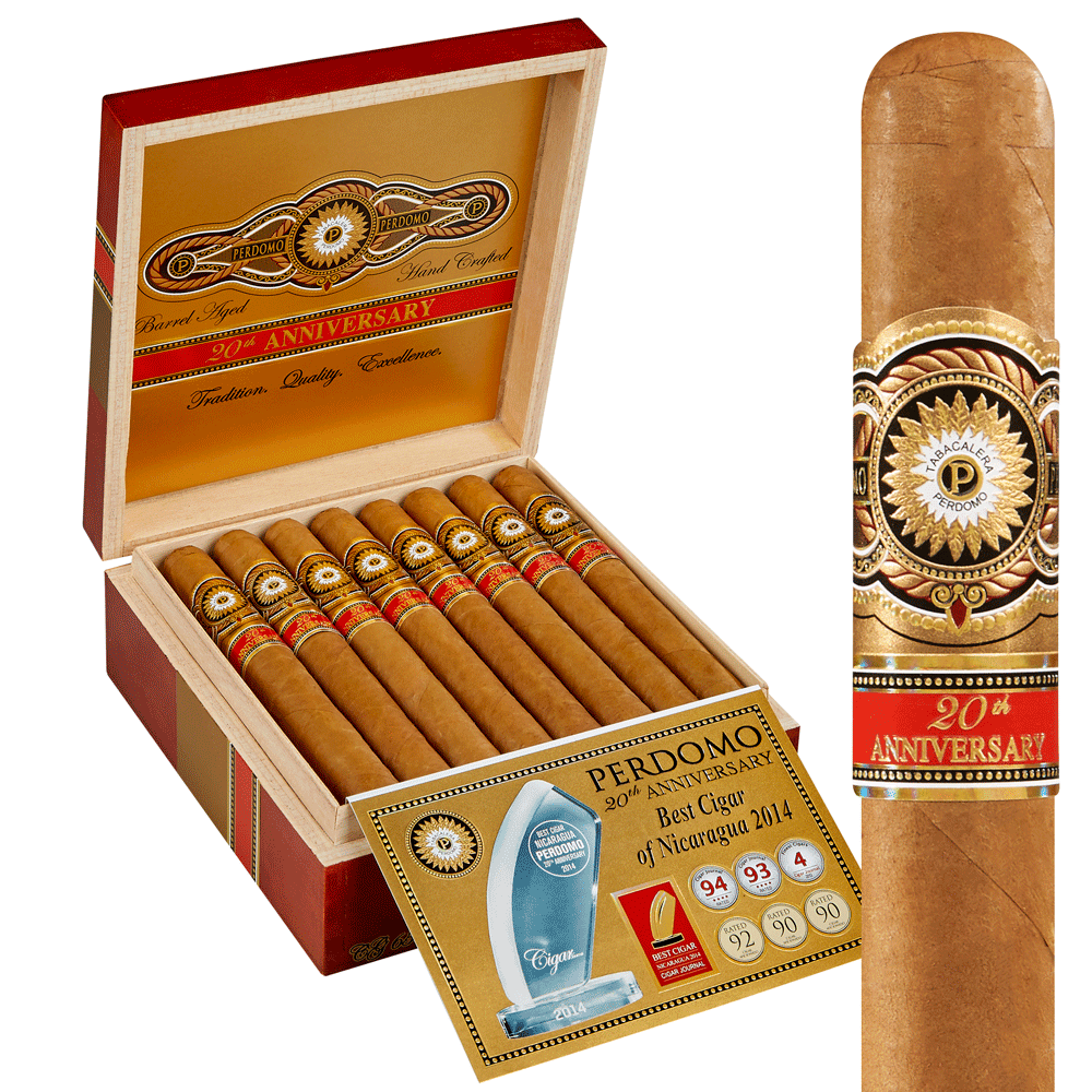 Perdomo 20th Anniversary Connecticut Corona Gorda (6 1/2" x 48) is a perfectly balanced medium body blend that we've been patiently waiting for (well, some not so patient). This new edition to the 20th Anniversary line is welcomed by all the Connecticut lovers out there. And there are a ton of you. Nicaraguan fillers and binders make up the bulk of the blend which is rolled by hand into the creamy Connecticut wrapper grown in Ecuador.