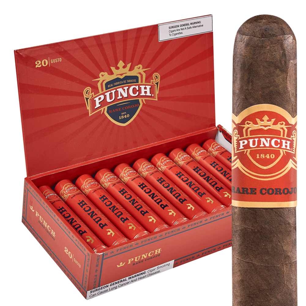 Now you can get your favorite cigars in decorative tubos. Punch Rare Corojo Gusto Robusto cigars (5" x 52) are handmade in Honduras using an incredible blend of Honduran, Nicaraguan, and Dominican fillers under a sweet Connecticut Broadleaf binder and aged Corojo wrapper that was so good that they named the cigar after it.