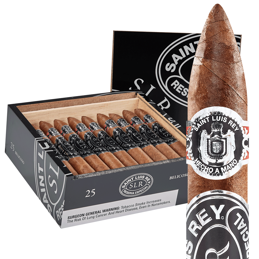 91-rated and complex, the Honduran-made Saint Luis Rey is a full-bodied blend showcasing a Nicaraguan wrapper. This premium handmade uses a diverse mix of Peruvian, Honduran, and Nicaraguan long-fillers. Expect hints of leather, spice, dried fruit, and cedar.