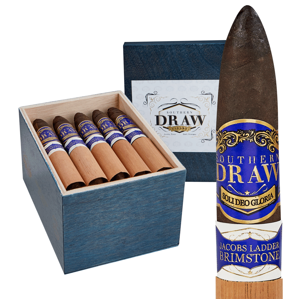 One of the newest offerings from Southern Draw is Jacob’s Ladder Brimstone. Made in limited quantities, like each Southern Draw cigar, Jacob’s Ladder Brimstone is made with the utmost quality and consistency and is blended by master blender AJ Fernandez in Esteli, Nicaragua. Flavorful and very full-bodied, Jacob’s Ladder Brimstone features a Pennsylvania Broadleaf wrapper that covers Nicaraguan long-fillers resulting in delicious notes of spice, cedar, and espresso.