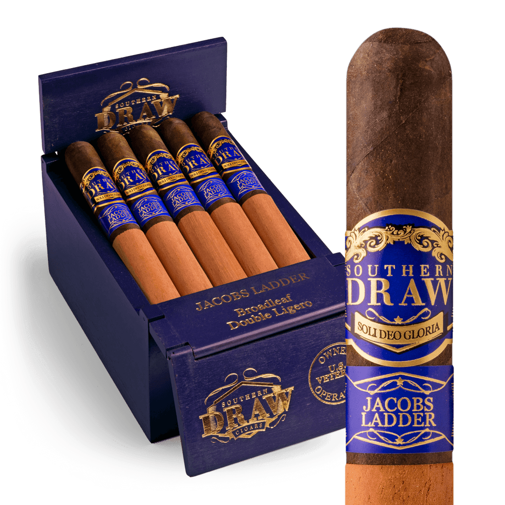 Show shoppers the Southern Draw Jacob's Ladder Gordo an exciting line of Cuban-style cigars from the one and only AJ Fernanadez. The premium Southern Draw Jacob's Ladder Robusto cigar uses a dark and oily broadleaf wrapper, an Ecuadorian binder, and aged fillers from Nicaragua, for a very rich and complex smoke with a medium to full body flavor profile. This top-notch cigar is loaded with flavorful notes of dark chocolate and creamy cappuccino, highlighted with roasted peanuts and hints of leather.