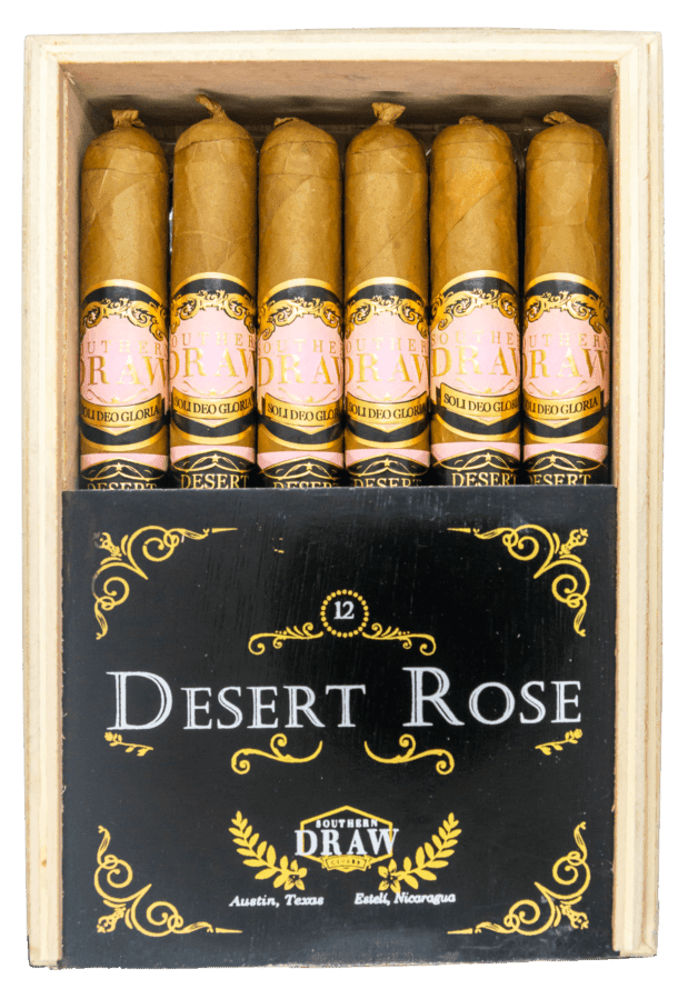 Southern Draw owner Robert Holt gives his wife Sharon a lot of credit for the success of his boutique brand, and his way of saying thank you was to blend a cigar after her. The Southern Draw line consists of expertly-crafted cigars at AJ Fernandez’s factory in Nicaragua that are made with quality and consistency in balance and flavor, and pair perfectly with select beers, wines, or spirits, and Rose of Sharon is no exception. An Ecuadorian Sun Grown Connecticut wrapper covers Nicaraguan and Dominican long-fillers producing a slightly spicy mellow to medium-bodied cigar. Undertones of leather, wood, and cocoa shine through in every puff of this complex and memorable Robusto-sized premium. Pick up Rose of Sharon for everyday enjoyment.