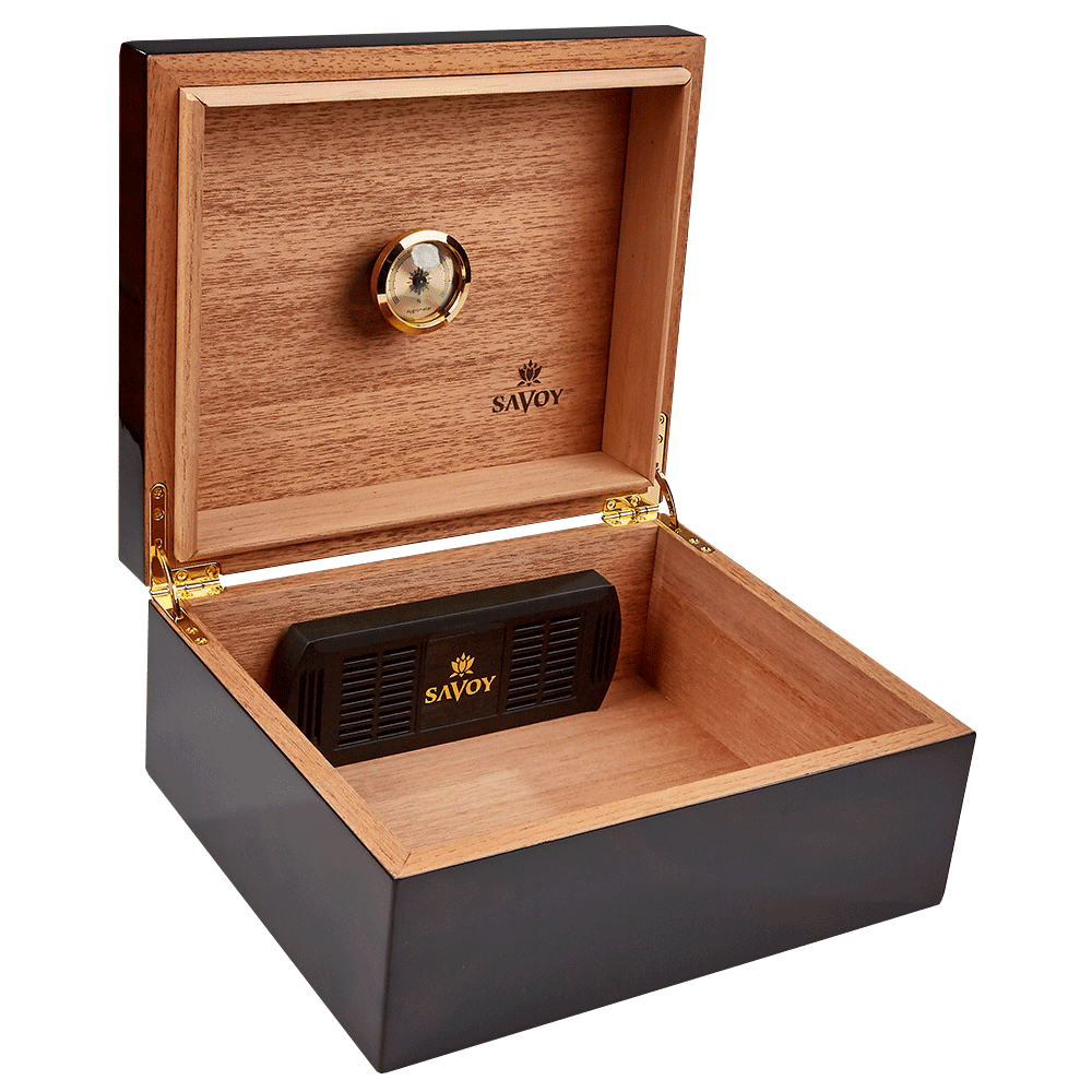 Ashton Classic Savoy Humidor is the premium humidor that you have been looking for. Lined with superior Spanish Cedar wood, this humidor is constructed of exotic woods and will be sure to keep your collection fresh and in tip top shape. With three size options, you'll be sure to find a humidor that can cater to your needs. Each of these humidors comes with an analog hygrometer and humidification element.