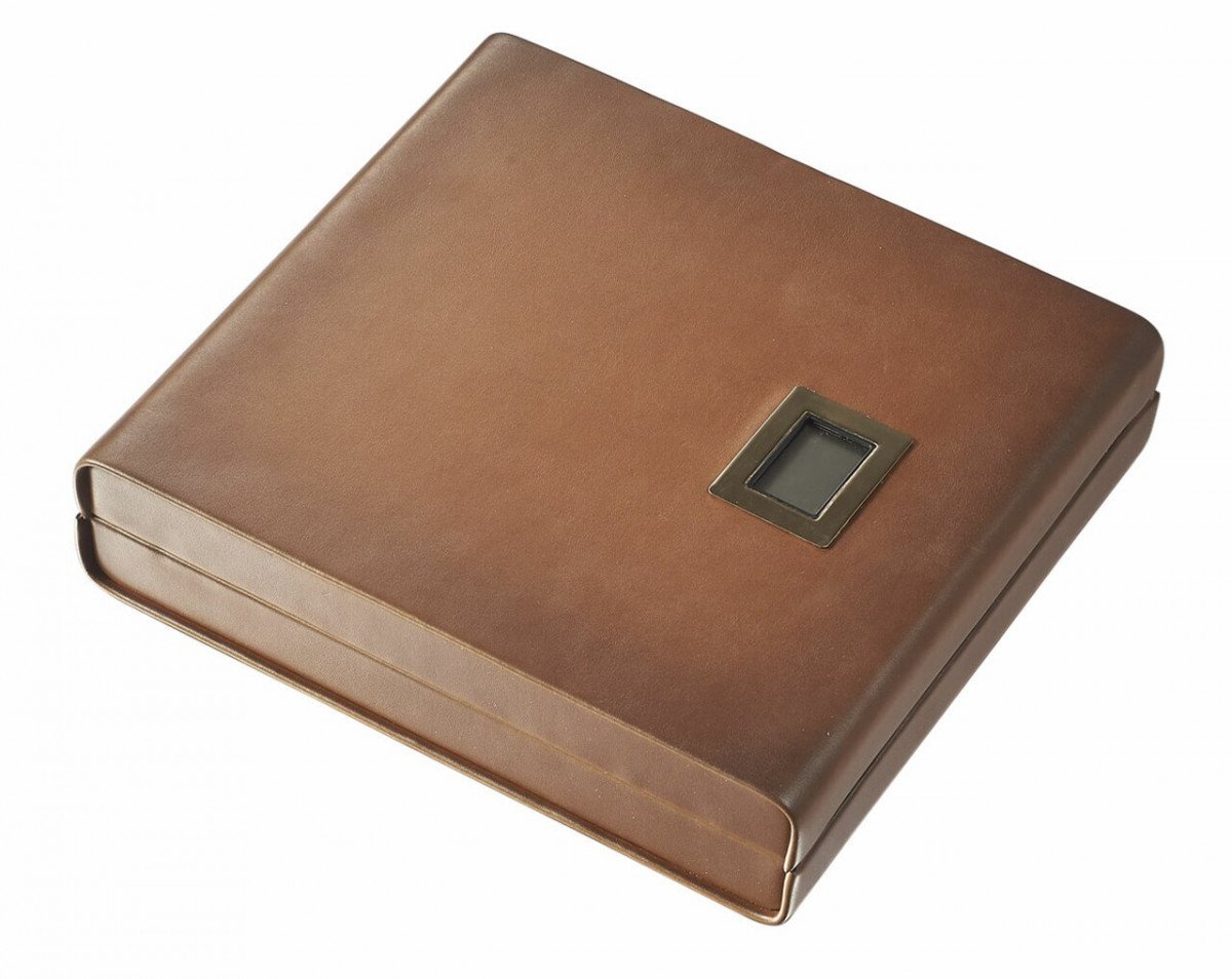 Brown Leather Madrid Cigar Humidor with Embedded Digital Hygrometer