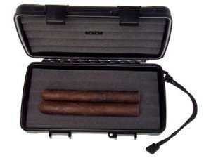 Premium Cigar Protection Airtight. . . . Watertight. . . . Crushproof 1 Mini Humidifier Super-strong ABS Molded Plastic Construction Silicone Seal is Airtight and Watertight Stainless Steel Hinge and Latch Hinges Molded Lock Ring for Addition of Extra Security High Density Urethane Foam Cradles and Protects Your Cigars Manufacturers Lifetime Guarantee Locking Clasp Made in the USA