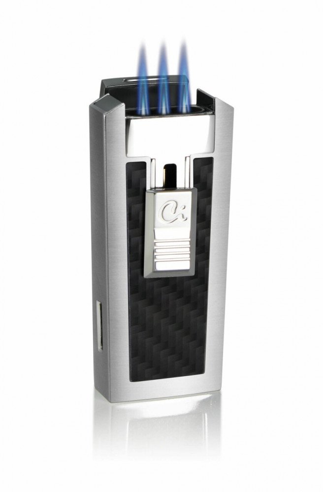 Caseti Tripolis Black Carbon Fiber Triple Torch Flame Cigar Lighter