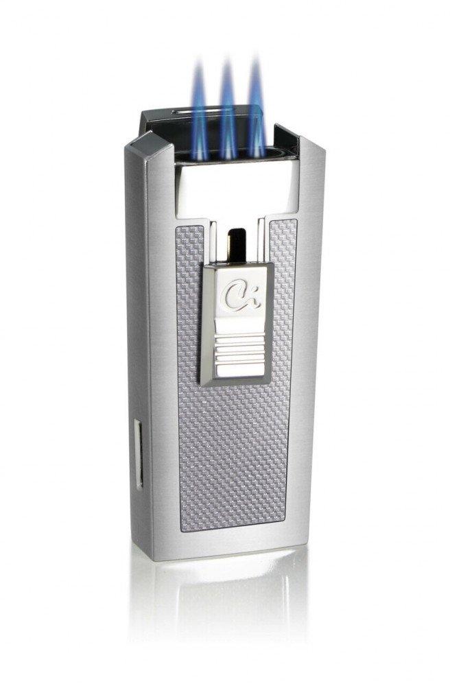 Caseti Tripolis White Carbon Fiber Triple Torch Flame Cigar Lighter