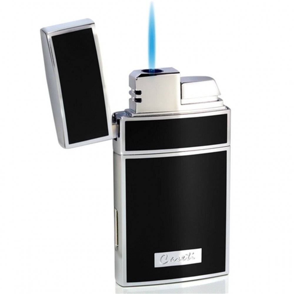 Caseti Troy Black Lacquer Single Torch Flame Cigar Lighter
