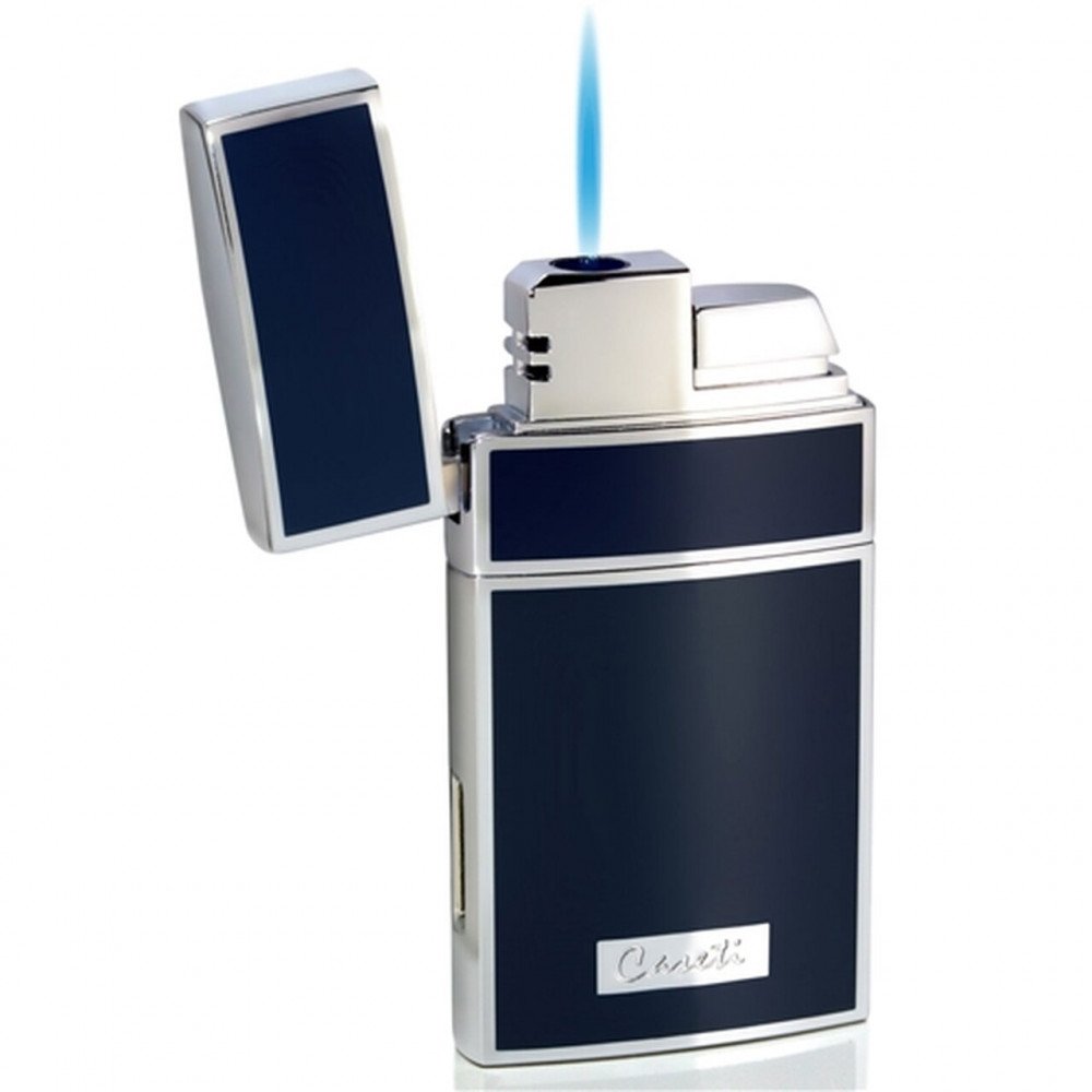 Caseti Troy Blue Lacquer Single Torch Flame Cigar Lighter