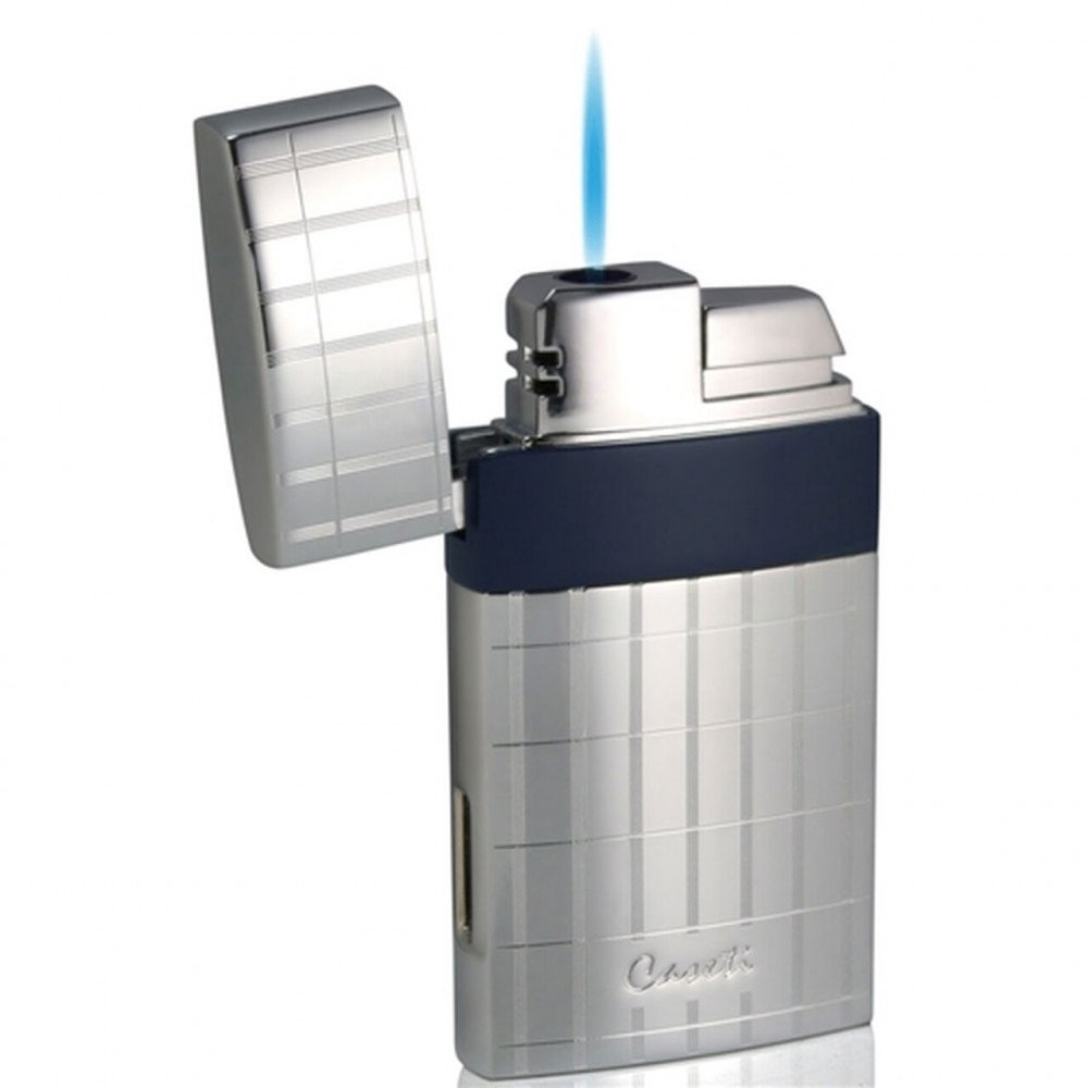 Caseti Troy Polished Chrome With Blue Single Torch Flame Cigar Lighter