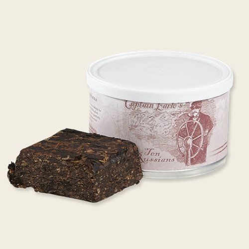 Captain Earle's Ten Russians is created for the true Latakia aficionado. A good amount of the smoky, black leaf is combined with sweet Virginia, spicy Orientals and some mellow Cavendish. The blend is pressed into a firm crumble cake to marry and mature the flavors.