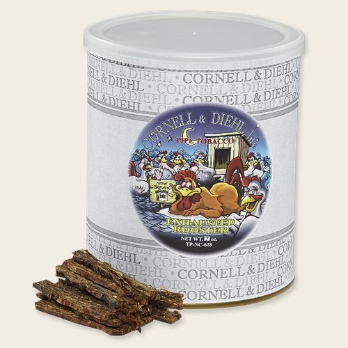 Cornell & Diehl Exhausted Rooster may have a funny-sounding name, but this is one serious tobacco. Select, sweet Virginias are combined with smoky dark-fired leaf, and a splash of Perique. It's finished with a subtle top note that is barely noticeable in the flavor, but enhances the aroma. The tobaccos are pressed and sliced to allow you to prepare the tobacco in any way you prefer. If you want something with a kick, grab a tin of C&D's Exhausted Rooster.